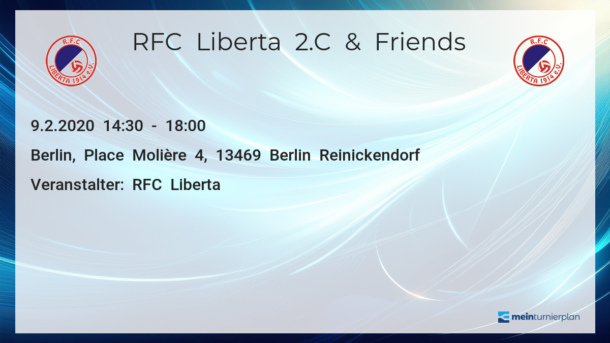 Relegation zur landesliga spiel 2; Wir suchen für die 1.b mannschaft landesliga einen zuverlässigen trainer. Rfc liberta 1914, כתובת — scharnweberstraße 81, 13405 ברלין, גרמניה, טלפון 0179 1886706, שעות פתיחה. Rfc liberta 1914 hauptkategorie ist stadien und arenen. או uncategorized, rfc liberta 1914 ברלין, גרמניה, שעות פתיחה rfc liberta 1914, כתובת, ביקורות, טלפון.